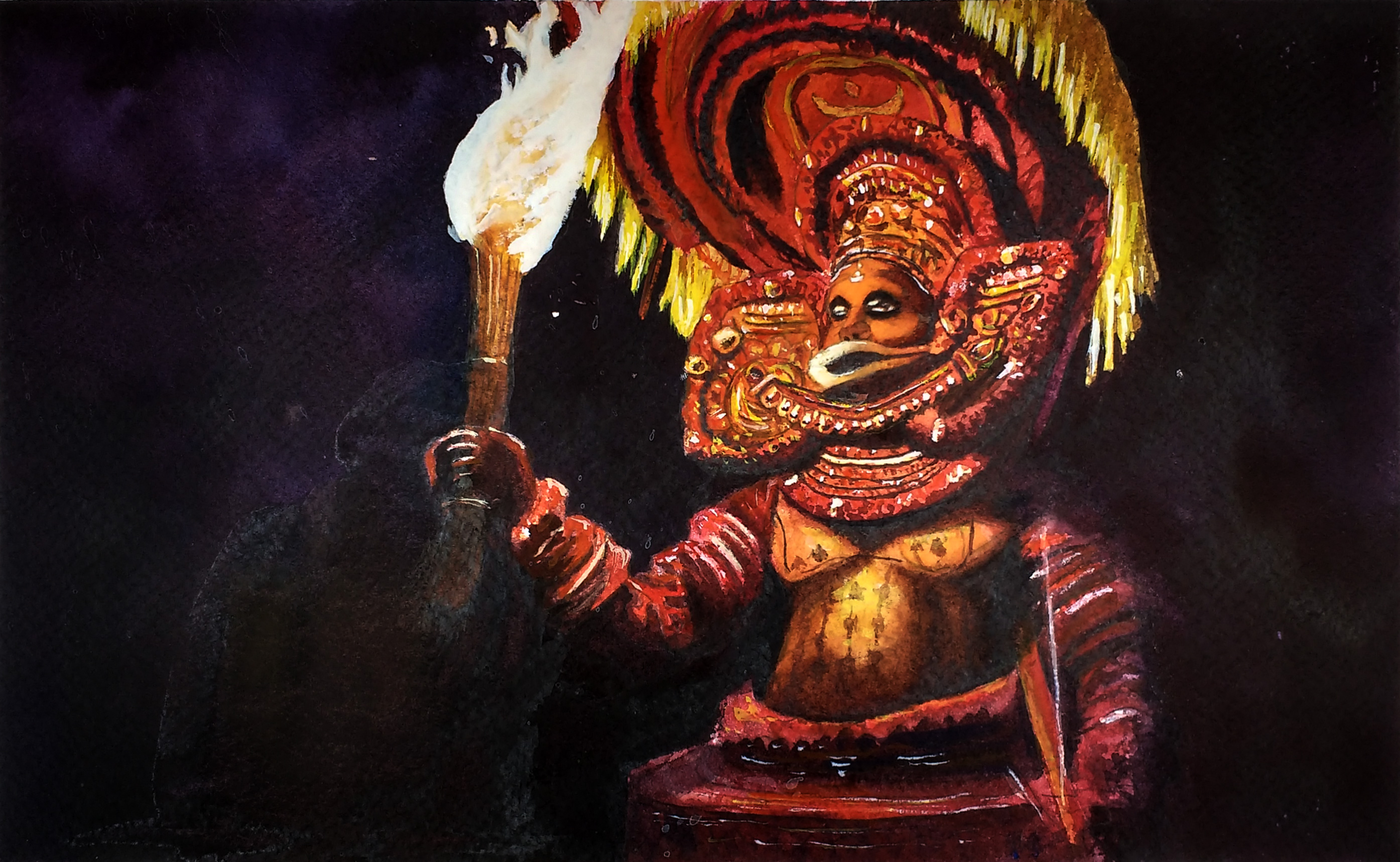 Theyyam fired up - Watercolor on Moulin DuRoy Paper