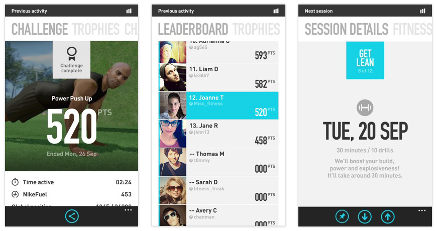 The leaderboard documents the user’s performance during a challenge, while in competition against their community of friends. From here users (who are involved in the challenge) can poke friends who haven’t competed, which further encourages social activity. The leaderboard appears for a maximum of 7 days before refreshing to reveal the leaderboard for the next challenge.