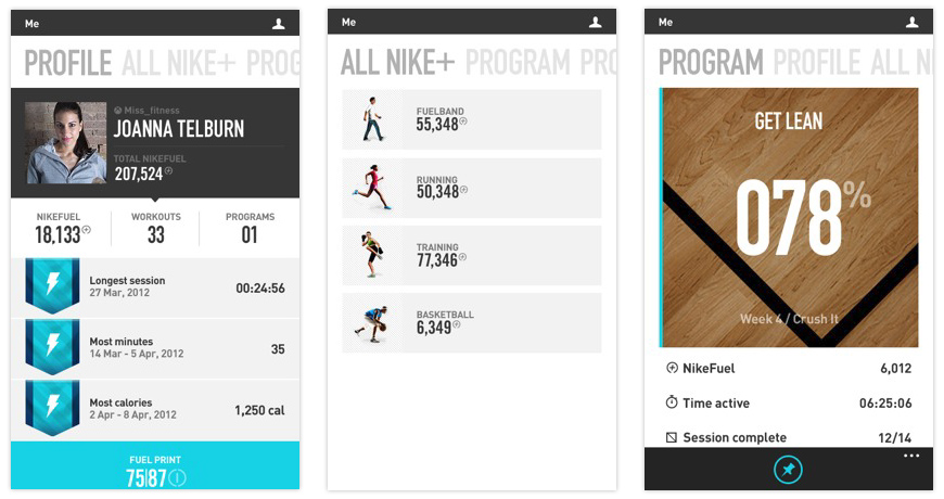 This provides an overview of the user’s activity, beginning with the calendar view. It documents all previous and future kinect activity, allows users to click-through to and navigate multiple activity on any given day, and details all Nike+ activity.